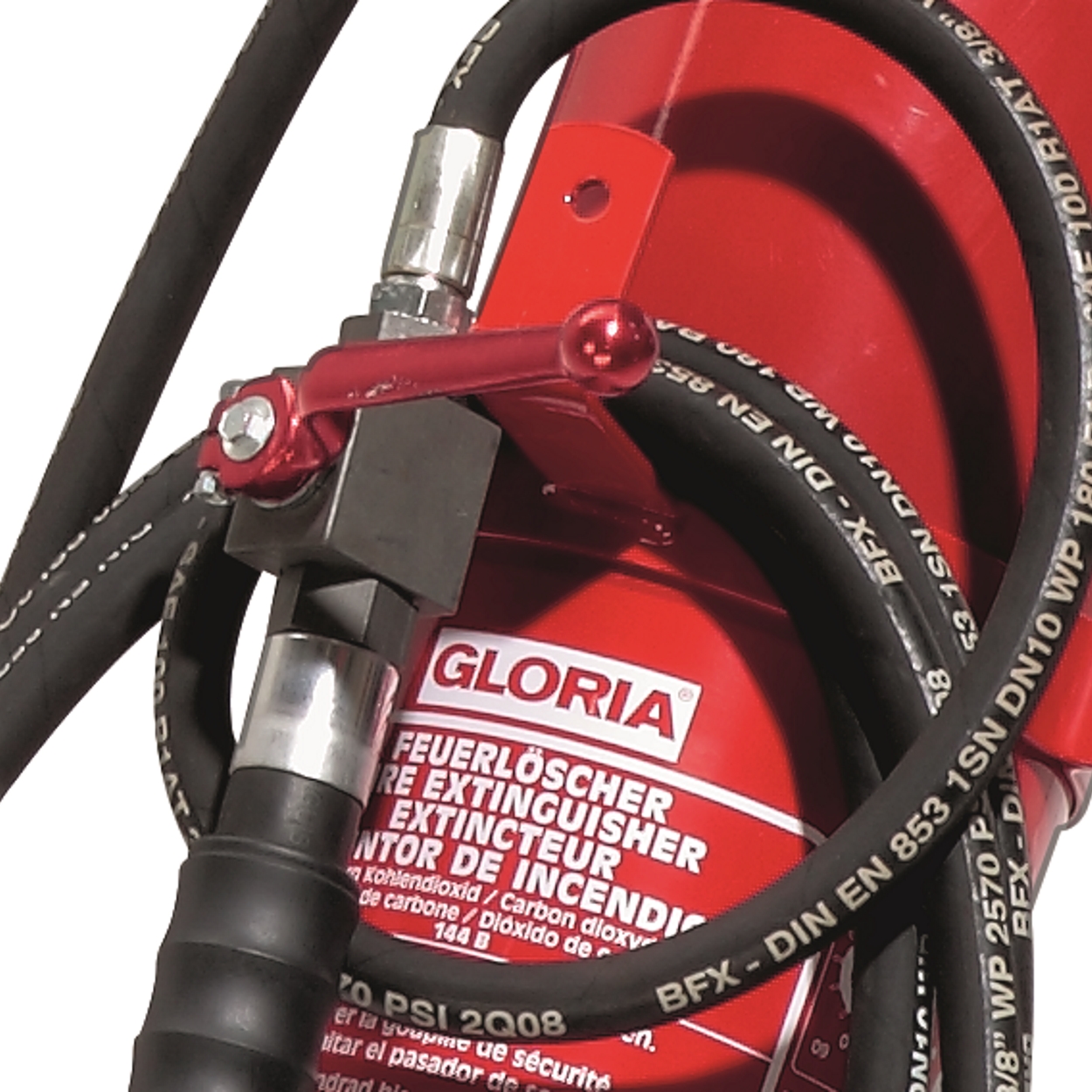 • Löschmittelstrahl durch Ventilhebel jederzeit abstellbar