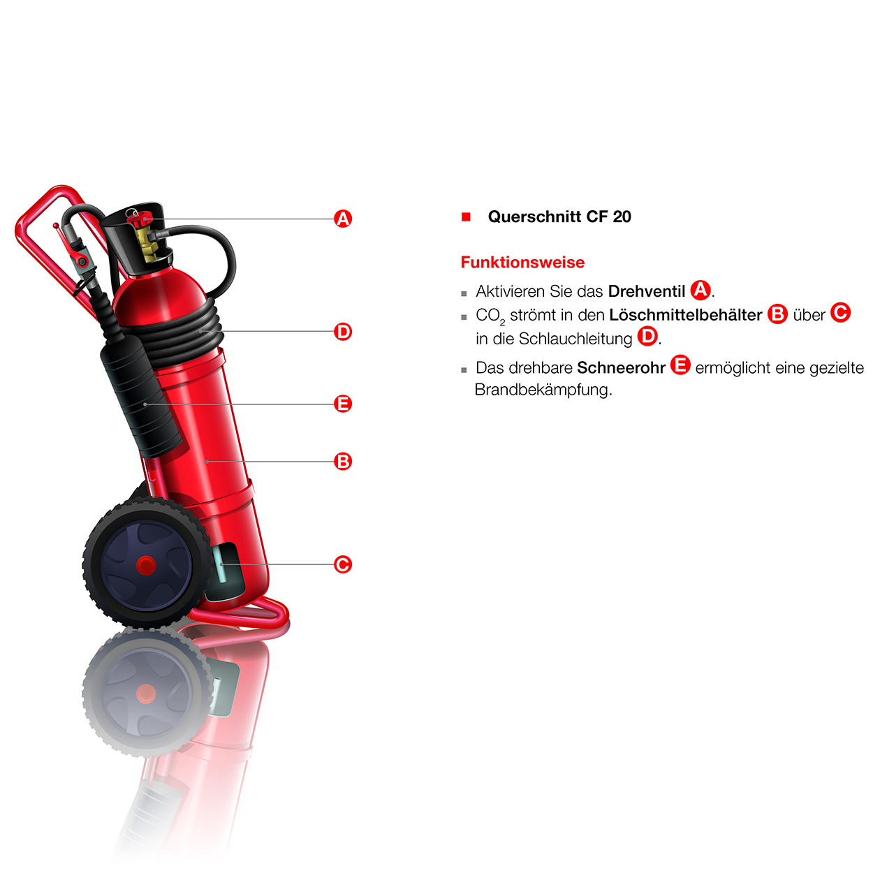 Details und Leistungsmerkmale der fahrbaren Kohlendioxid-Feuerlöscher