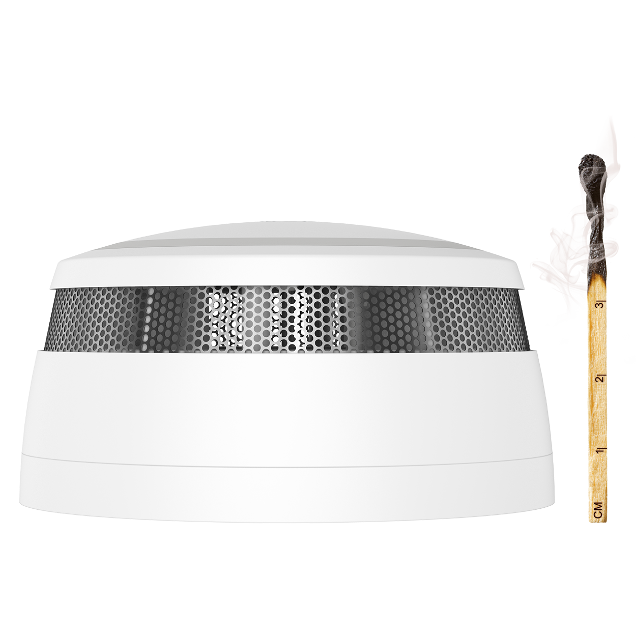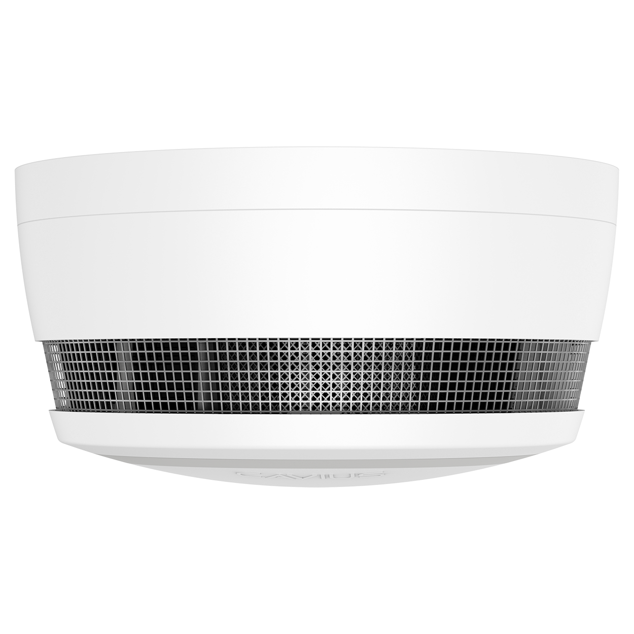 Eleganter drahtlos und sehr einfach vernetzbarer, fotoelektrischer Rauchwarnmelder mit 10-Jahres-Garantie und Batterielaufzeit entwickelt für die Installation in Privathäusern.